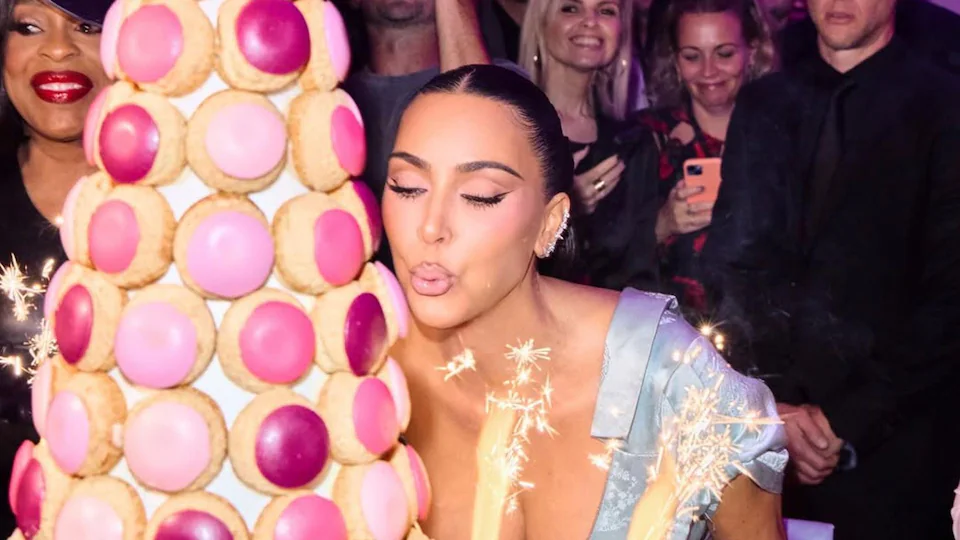 Durante la velada, Kim estuvo acompañada por su madre Kris Jenner, su círculo cercano de amigos y el reparto de su serie. La decoración, con luces en tonos rosas y morados, y detalles como un pastel tipo torre de macaron, flores enviadas por sus hijos y elementos de diversión como donuts, reflejaron un evento con doble propósito: festejar un cumpleaños y reforzar su imagen pública.