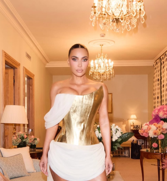Para la segunda parte de la velada, Kardashian deslumbró con otro look de impacto: un corsé dorado combinado con una falda de tul de Givenchy, diseño que perteneció a la firma Alexander McQueen a finales de los noventa. Su elección volvió a dejar claro que la estrella posee un instinto único para unir historia, arte y moda en un mismo outfit.