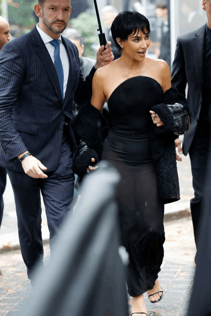 El 4 de octubre de 2025, Kim asistió al desfile de Maison Margiela llevando un cabello corto, oscuro, con textura húmeda y flequillo suave (esa línea que roza las cejas), un estilo que su estilista Chris Appleton bautizó como “Paris Pixi”. El look cuenta con partes más cortas en la nuca y los laterales, mientras que algunos mechones delanteros caen con un ligero efecto despeinado, aportando movimiento y carácter.