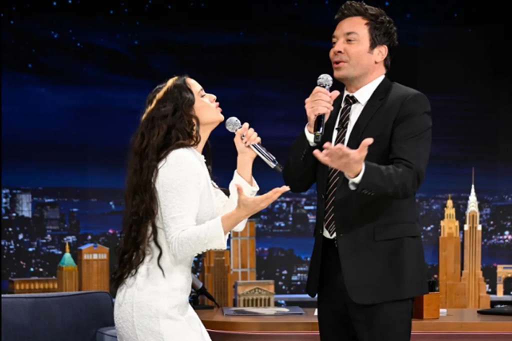 La parte musical fue igualmente mágica. Rosalía interpretó “La Perla”, uno de los temas más potentes de su nuevo álbum, y animó a Fallon a unirse: primero repitió líneas, luego cantó con el micrófono en mano. Al final, él triunfó parcialmente, mientras ella lo alentaba con calidez. Para cerrar, él proclamó: “Así se hace”, y reafirmó su admiración por la artista. Fue una mezcla perfecta de talento, ternura y pura química televisiva.